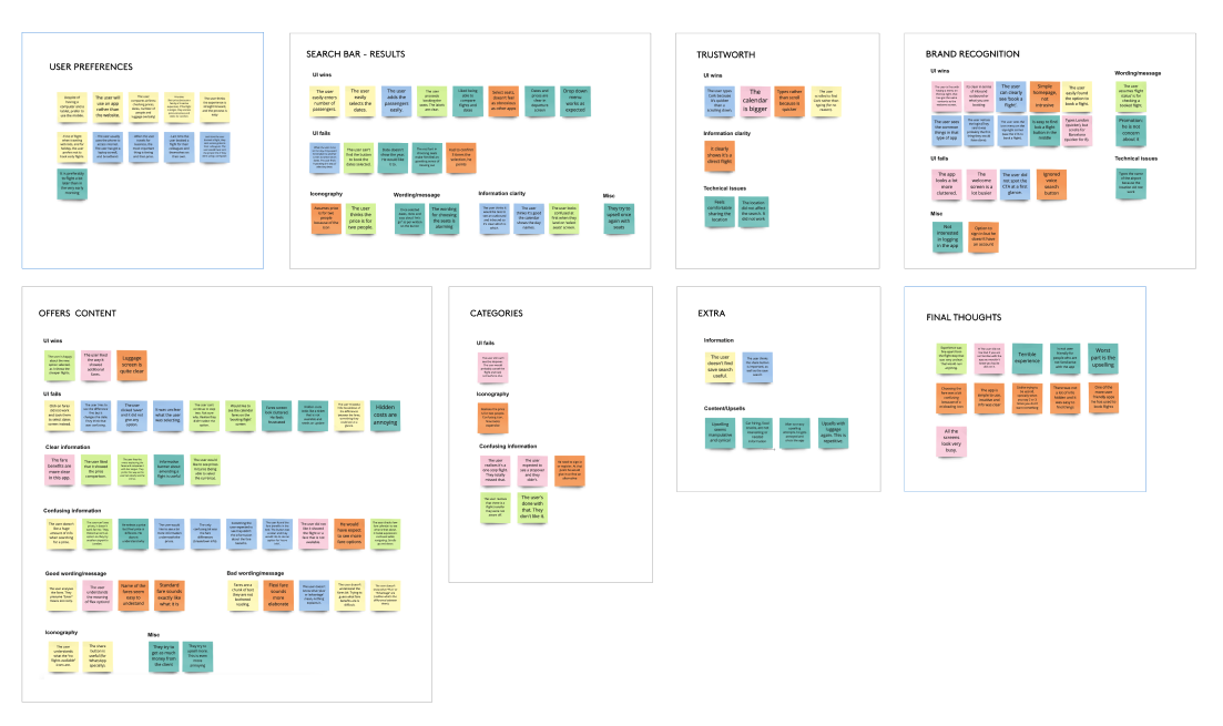 We created an Affinity Diagram to make sense of all of our findings. The purpose of the Affinity Diagram is to organize user feedback and try to search for trends that might have been alluded to but never explicitly stated